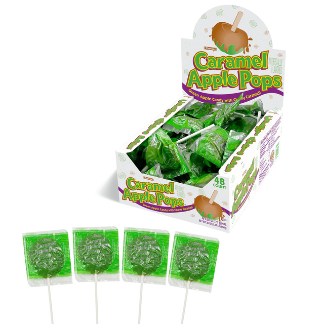 Enjoy the perfect blend of tart and sweet with classic Caramel Apple Pops! Each lollipop features a delicious green apple hard candy center coated in a layer of rich, chewy caramel. A nostalgic favorite and a top seller year-round, especially during fall.
