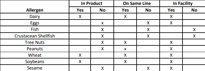 Manufactured in a facility that processes peanuts, tree nuts, wheat, soy, and milk products