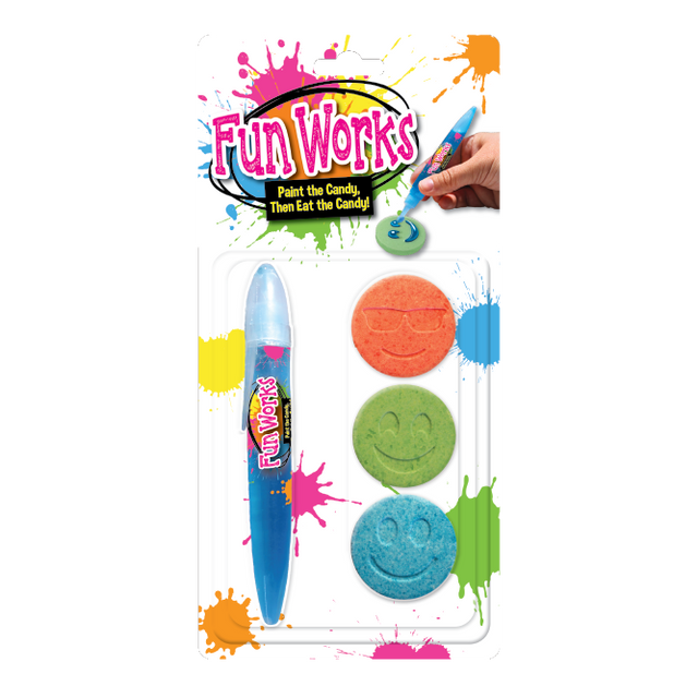 The Foreign Candy Company Fun Works Paint The Candy 24ct brings creativity and sweetness together in one exciting treat! Each display includes 24 individually packaged “Paint The Candy” kits, where kids can enjoy delicious candy while decorating it with colorful, edible “paint.” This interactive candy experience makes snacking extra fun and encourages imaginative play.